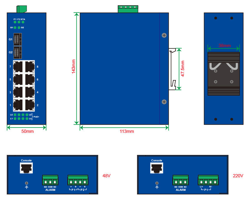 輸入電流 Max 5.2A@48VDC(8個(gè)PoE端口,每個(gè)PoE端口最高可支持30W)